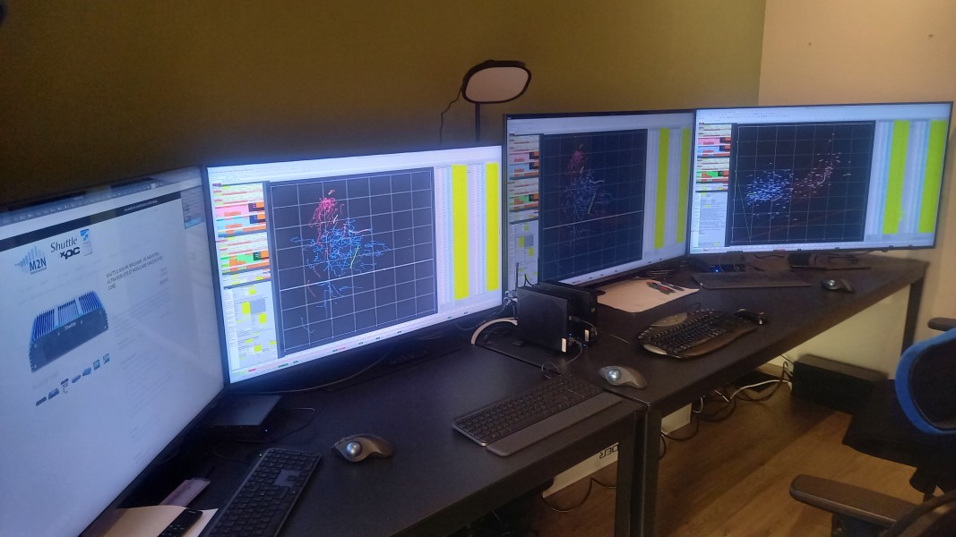 The data (huge) is calculated in the background. Analysis at any one computer requires two monitors (like engineering with two A1 drawings; it’s just common sense) while using the file later or doing reports requires only one. I choose a battery inverter and lightning surge protection to protect the work. I choose Shuttle equipment for silence; it’s also gear for 24/7 operation in hot or cold environments, top class. I wish my work was.