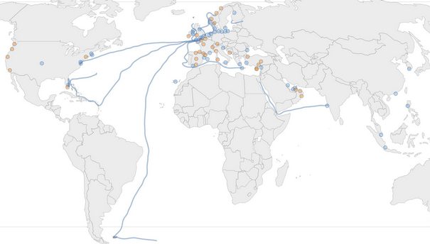 It was a bit of a blur. Blue is work on ships and shipyards or training others or being trained. Orange is personal or work prospecting. 310 plane flights and 40 in helicopters, quite a few tugs too. Very roughly 1 million km in cars/buses and trains. 1977 to 2006.